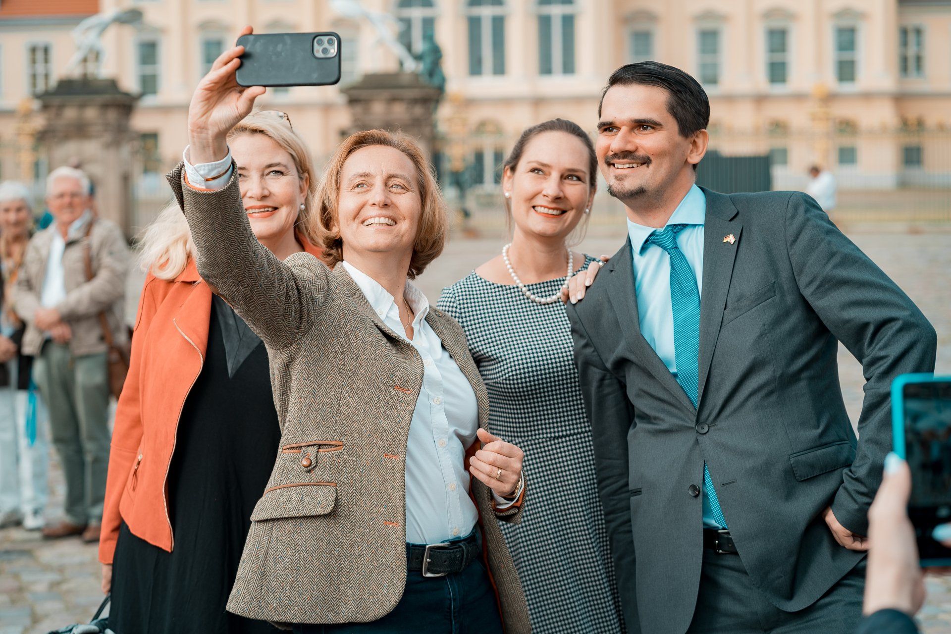 Gestern fand unsere erfolgreiche Kundgebung vor dem schönen Charlottenburger Schloss statt. Ungefähr 150 Berliner und Charlottenburger versammelten sich und hörten die Wahlkampfreden von Dr. Kristin Brinker, Beatrix von Storch, Eva-Marie Doerfler und meiner Wenigkeit. Die Stimmung war großartig und wir konnten ein paar schöne Bilder einfangen. Auch wenn sich nur wenige Besucher des nahegelegenen Kunstmarktes unserer Kundgebung spontan anschlossen, so tingelten doch immer wieder ein paar neugierige Passanten um unsere Kundgebung herum. An den Ständen konnte auch viel Wahlkampfmaterial verteilt werden. Das Großplakat von Eva und mir stand auch den ganzen Tag gut sichtbar zur Straße. Jedenfalls haben die Charlottenburger gesehen, wir sind da und wir machen Wahlkampf!